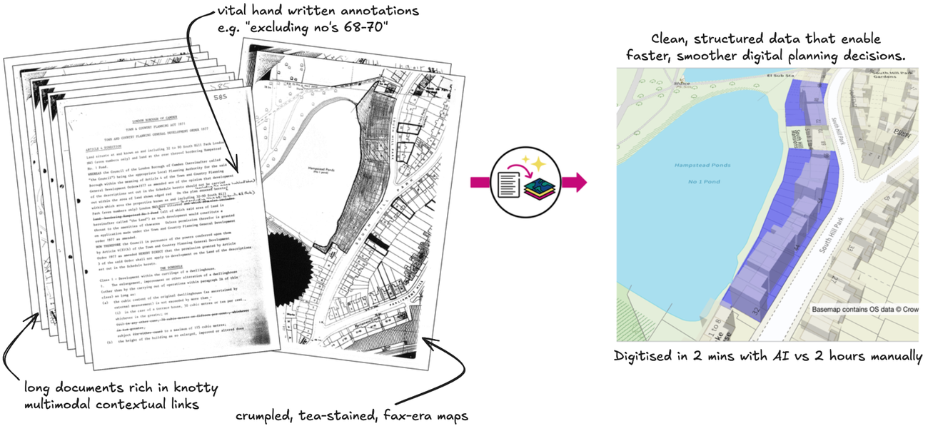 As the UK Government highlights, “The new generative AI tool will turn old planning documents—including blurry maps and handwritten notes—into clear, digital data in just 40 seconds – drastically reducing the time it takes planners.”
